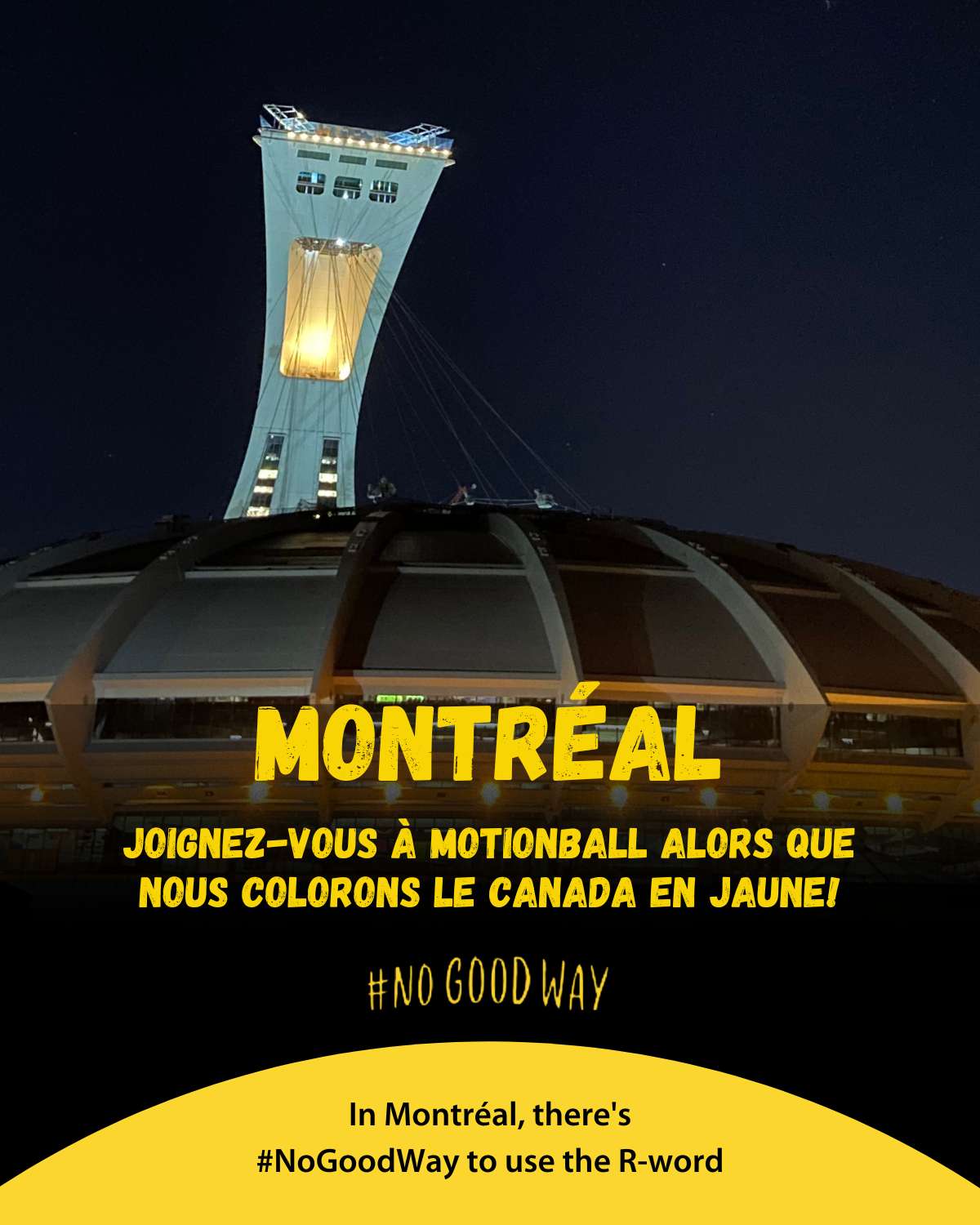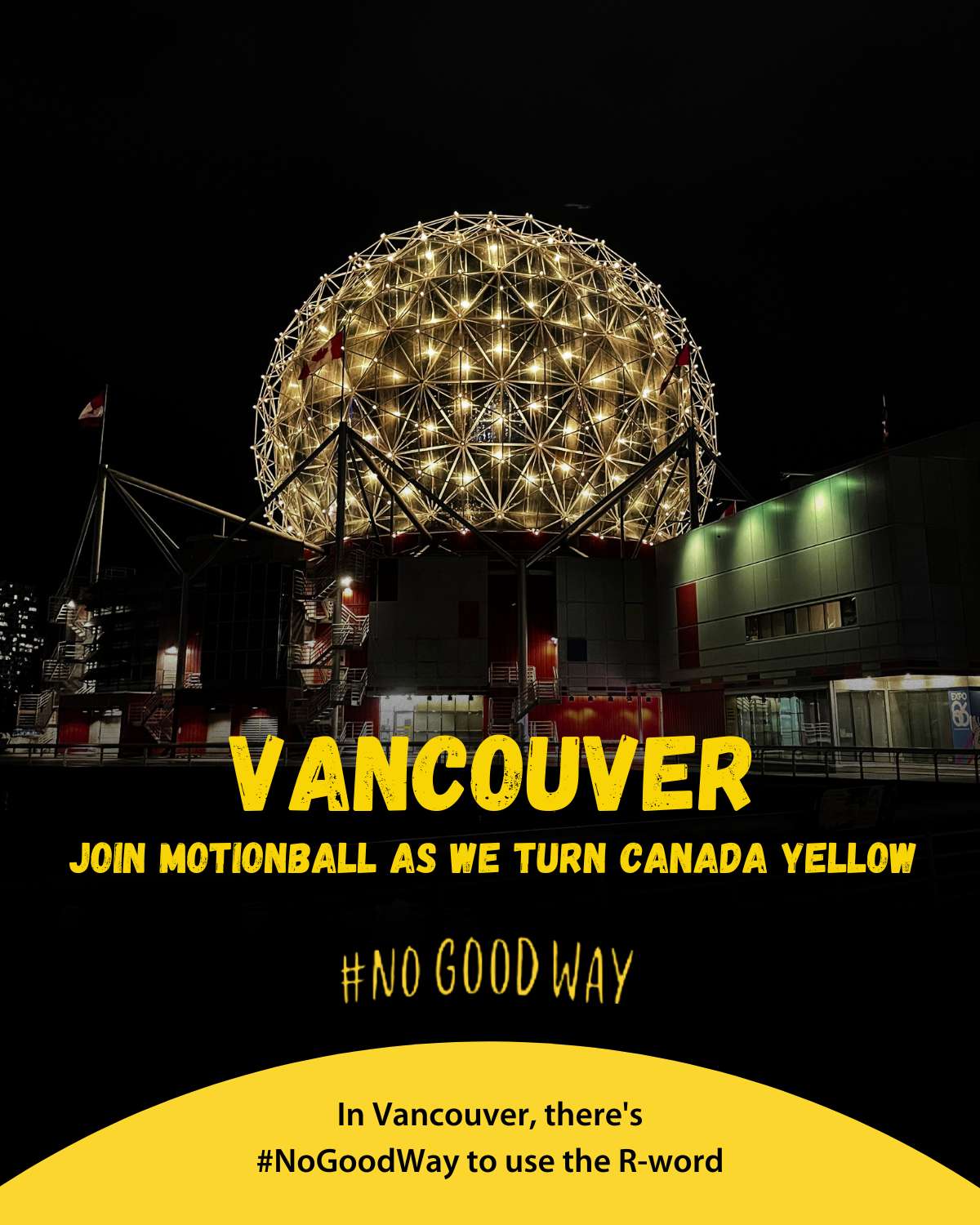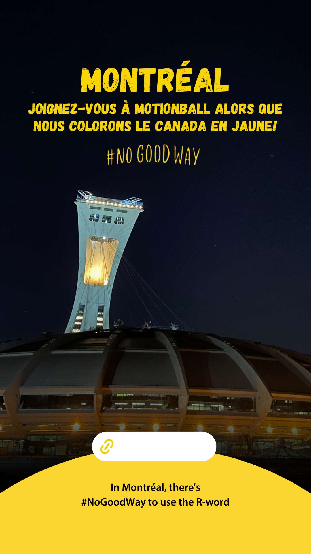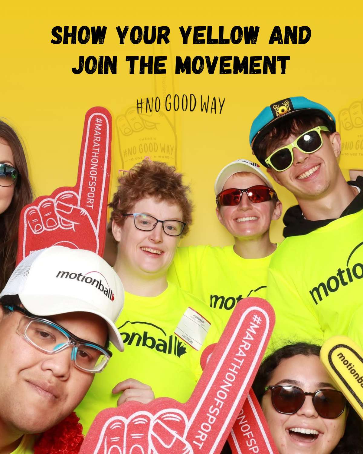 Grab a friend, wear yellow or motionball gear, and pull out your phone to record a video at home or in your community to showcase your support. What to say: "In [your community], there’s #NoGoodWay to use the R-word."
