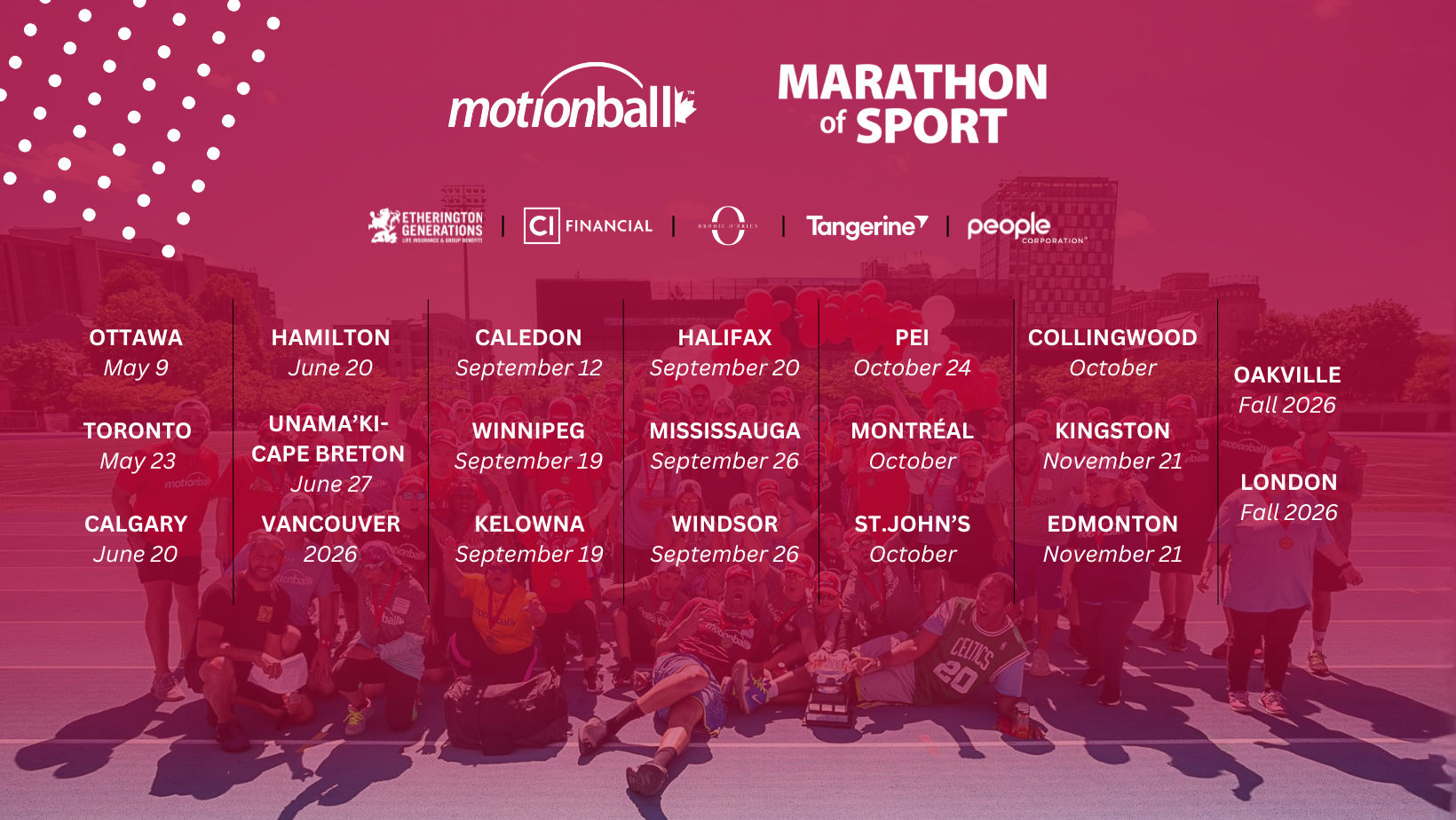 The 2024 Marathon of Sport Toronto hit a record high for a one-day event raising $425,000, and the 2024 Quad-Header (Marathon of Sport Calgary, Cape Breton, Hamilton, and Vancouver) raised $462,000.